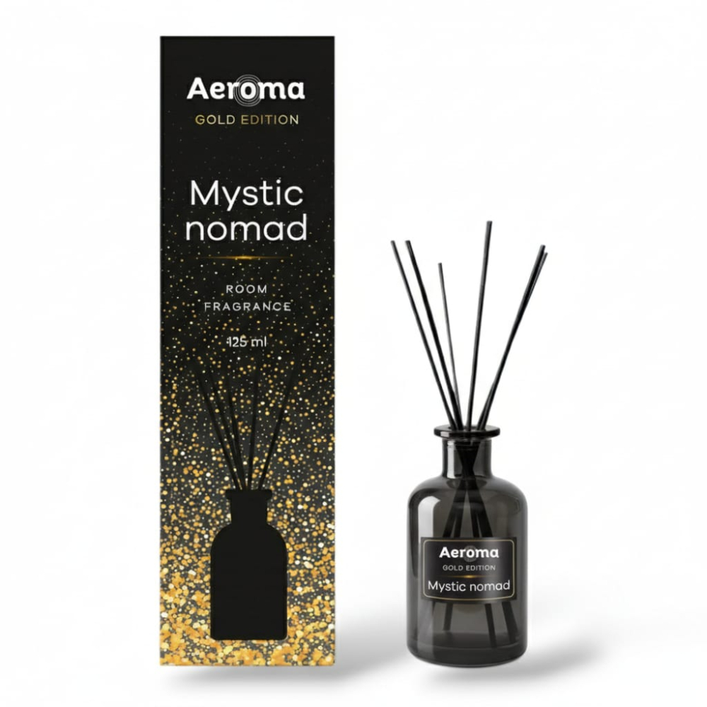 Odorizantul de cameră Aeroma Gold Mystic Nomad 125 ml aduce un parfum misterios, cald și sofisticat, inspirat de aromele orientale. Este potrivit pentru încăperi medii și mari, oferind o atmosferă elegantă și relaxantă.