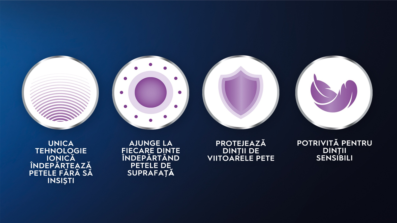 Cu albirea ionica, protejeaza dintii de formarea unor pete viitoare.