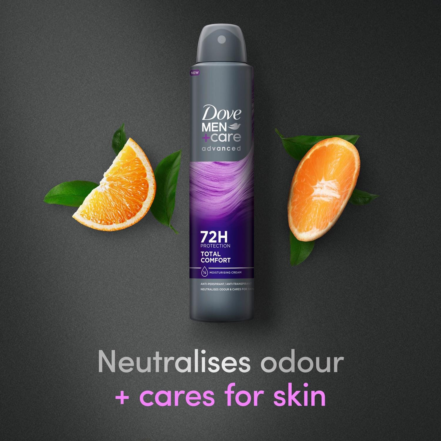 Imbogatit cu 1/4 crema hidratanta, antiperspirantul Dove Men+Care Advanced Total Comfort sustine bariera naturala a pielii, reducand iritatiile si mentinand pielea fina.