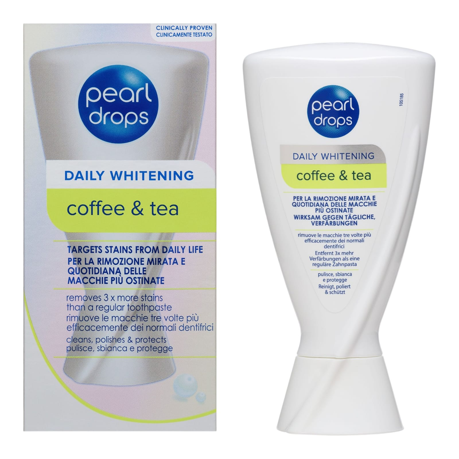 Pasta de dinți PEARL DROPS Coffee & Tea este un produs specializat creat pentru persoanele care consumă în mod regulat cafea, ceai sau alte băuturi care provoacă decolorarea dinților. Datorită formulei sale unice, pasta de dinți îndepărtează eficient depunerile și petele, restabilind albul natural al dinților și asigurând sănătatea orală.