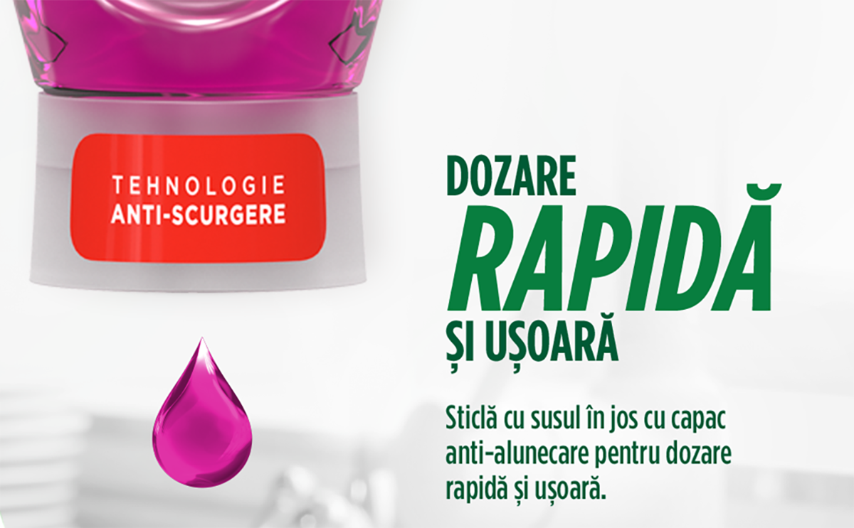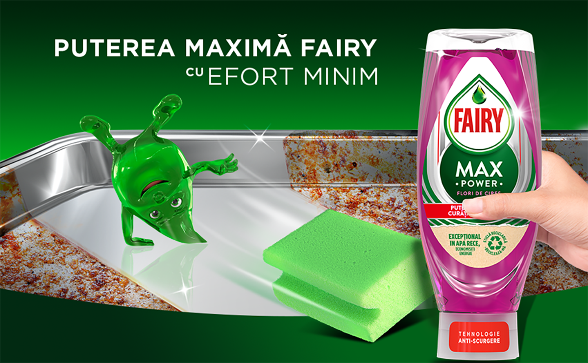 Transforma spalatul vaselor intr-o placere cu Fairy Max Power datorita sticlei cel mai usor de utilizat din gama Fairy – designul este cu susul in jos si vine fara capac, pentru dozare rapida si usoara.