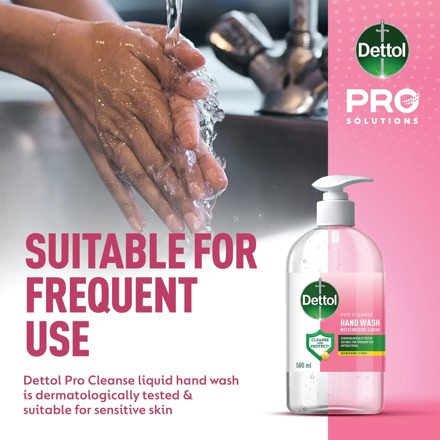 Săpunul lichid de mâini Dettol Pro Cleanse este delicat cu pielea și eficient cu murdăria. Formula sa îndepărtează eficient murdăria, fiind în același timp delicată cu pielea. Testat dermatologic, este potrivit pentru pielea sensibilă și utilizarea frecventă. Livrat într-o sticlă de 500 ml cu duză pentru aplicare ușoară.