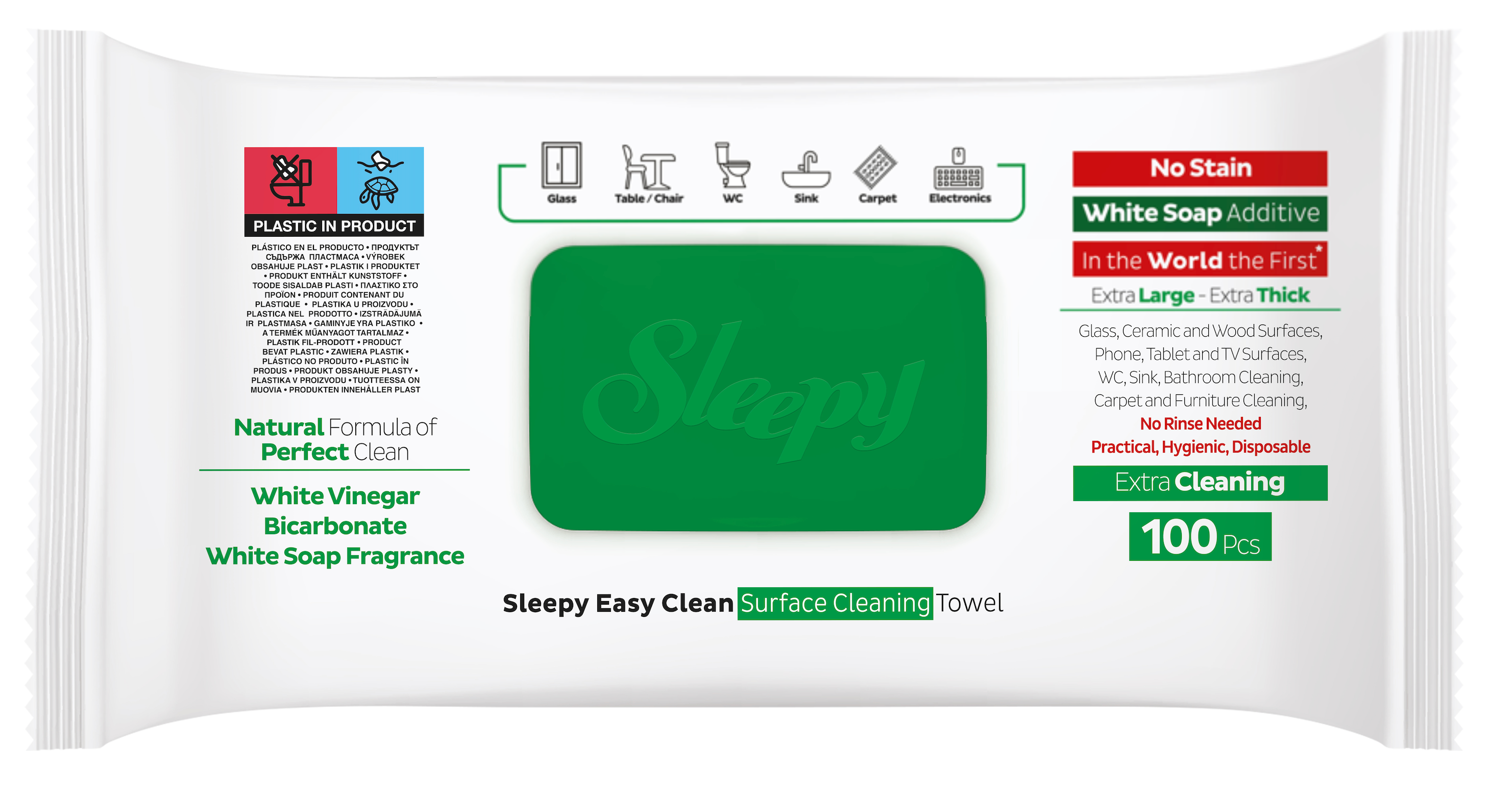 Sleepy SLEEPY Servetele Umede Curatare Multisuprafete cu Bicarbonat, Otet Alb, Eucalipt - White Soap Additive, 100 Buc